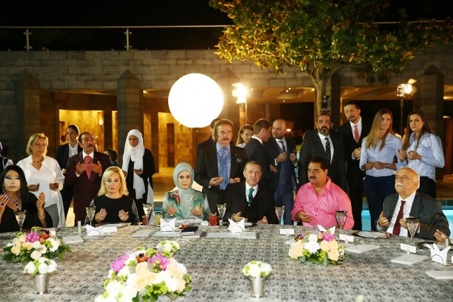 Cumhurbaşkanı Recep Tayyip Erdoğan, Tarabya Köşkü'nde sanatçı ve sporculara iftar verdi. İftar yemeğine sanat dünyasından; İbrahim Tatlıses, Orhan Gencebay, Oyuncu Hakan Ural, Ajda Pekkan, Hülya Avşar, Bülent Ersoy, Muazzez Ersoy, Esra Erol, Işın Karaca, Emel Sayın, Yavuz Bingöl, Uğur Işılak, spor dünyasından ise Aykut Kocaman, Hidayet Türkoğlu, Rıdvan Dilmen, Ömer Onan, Kerem Tunçeri, Ufuk Sarıca, Şahika Ercüment, Tolga Zengin, Fenerbahçeli Basketbolcular Bobby Dixon ve Melih Mahmutoğlu'nun da aralarında bulunduğu çok sayıda isim katıldı.