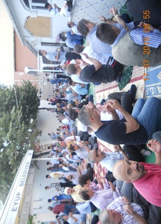 Cemaati Bir kısmı Gine caddesinde bulunan yaya kaldırımında Bayram namazını kılmak zorunda kaldı. Kendileriyle görüştüğümüz cemaat inşalah camimiz Gelecek Ramazan bayramına yapılır, hava yağmurlu olsa idi bu kadar cemaat nereye sığardı diye tepkilerini dile getirdiler.
