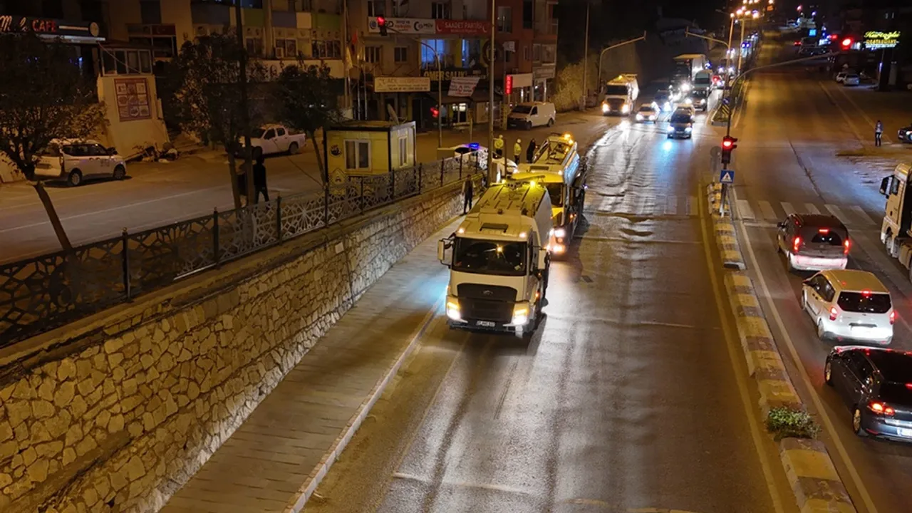 Gece gündüz aralıksız olarak yürütülen çalışmalarda, yol çevresinde ve refüjlerde biriken katı atıklar ve yaşanan yağışlar nedeniyle yollarda oluşan toprak birikintileri yol süpürme araçları ve personeller tarafından temizleniyor.