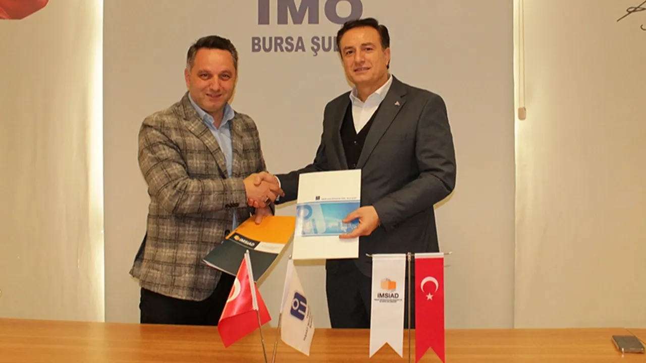 İMO Bursa Şube Yönetim Kurulu Başkanı Serdar Atilla Erdem ve İMSİAD Yönetim Kurulu Başkanı Şeref Demir bir araya gelerek protokolü imzaladılar.