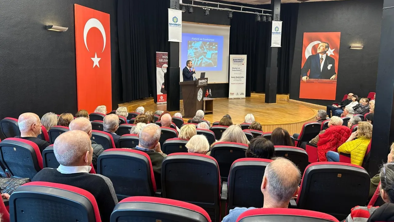 Tarihçi, yazar ve emekli tuğgeneral Naim Babüroğlu, 'Atatürk ve Cumhuriyet' söyleşisiyle Bakırköylülerle buluştu. Programa Bakırköy Belediye Başkanı Doç. Dr. Ayşegül Ovalıoğlu da katıldı.