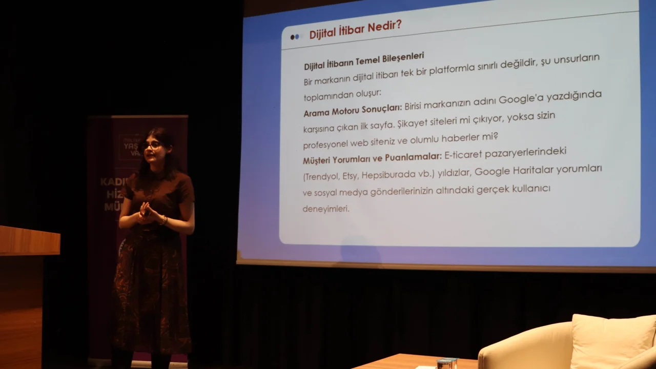 Eslem Hızır ise dijital itibar yönetimi, dijital varlıklar ve güven inşasıyla ilgili sunum gerçekleştirdi.