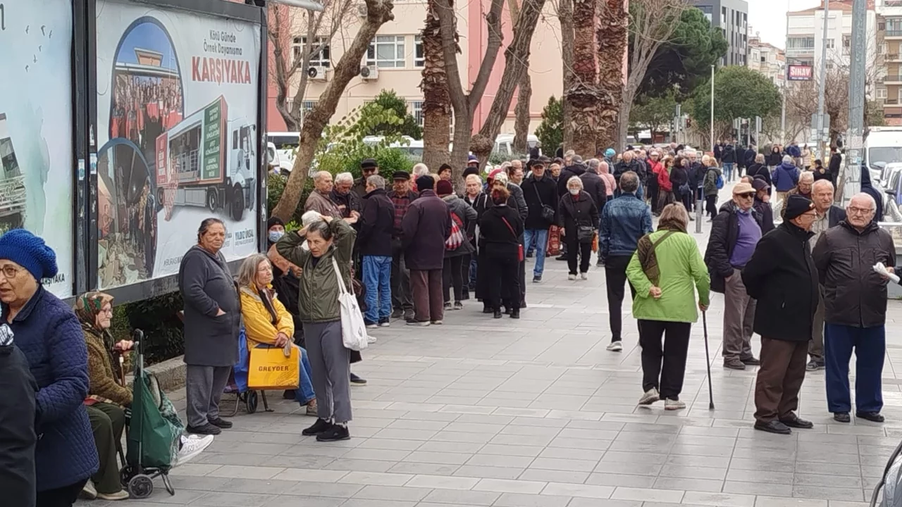 Mağaza, temel gıda maddeleri sattığı için sürekli olarak kalabalık olurken kuyrukta bekleyen emekli vatandaşlar, Karşıyaka'nın farklı mahallelerinden geldiklerini, kiminin yürüyerek, kiminin ise belediye otobüsüyle geldiğini belirtti.