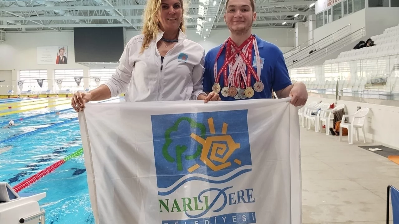 İZMİR (İGFA) - Narlıdere Belediyespor sporcusu Sarp Börekçi, Türkiye Özel Sporcular Spor Federasyonu'nun Halkapınar Olimpik Yüzme Havuzu'nda düzenlediği İzmir Yüzme Şampiyonası'ndan 8 madalya ile döndü. Ayrıca, 4 dalda da Türkiye Şampiyonası barajını aşan Sarp Börekçi, Narlıdere'ye yine büyük bir gurur yaşattı.
