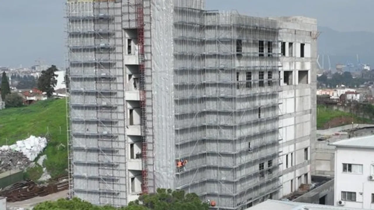 2020 İzmir depremi sonrası hasar gören C bloğun yıkılmasının ardından projelendirilen ek hizmet binası, dayanıklı ve modern yapısıyla kente uzun yıllar hizmet verecek şekilde yükseliyor.