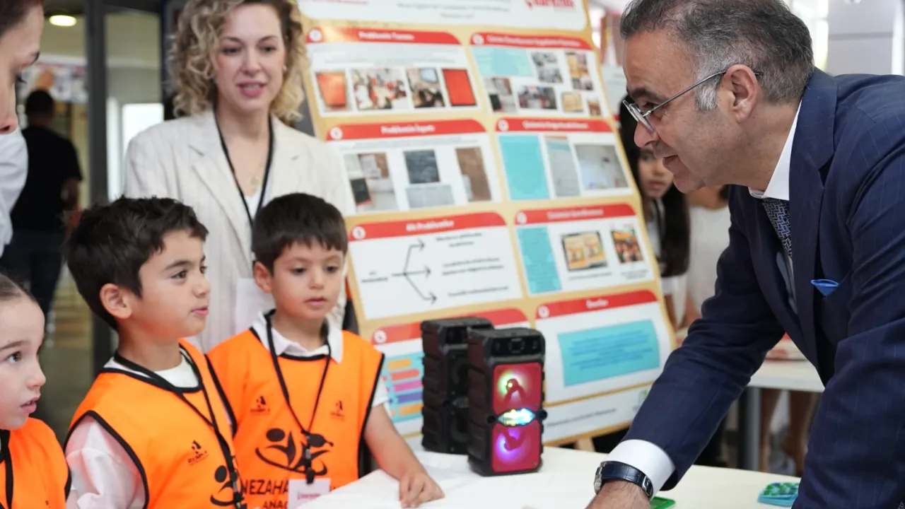 İZMİR (İGFA) - Disiplinler arası düşünme becerilerini geliştirmeyi, öğrencilerin düşüncelerini pratik becerilere dönüştürerek hayatla bütünleşmelerini amaçlayan ‘Harezmî Eğitim Modeli’ sene sonu etkinliğine; Millî Eğitim Bakanlığı Ortaöğretim Genel Müdürlüğü Araştırma, Geliştirme ve Projeler Daire Başkanlığı Şube Müdürü Bayram Gaygusuz, İzmir İl Millî Eğitim Müdürü Dr. Ömer Yahşi, İzmir İl Millî Eğitim Müdür Yardımcıları İlker Eraslan ile Hasan Vermez, Millî Eğitim Bakanlığı Genel Koordinatörleri Gamze Özçelik Demiral, Burcu Koral ile Hülya Gürkan, Proje İl Koordinatörü Dr. Sevil Kalıpçı Söyler, eğitim yöneticileri, öğretmenler ve çok sayıda öğrenci katıldı.