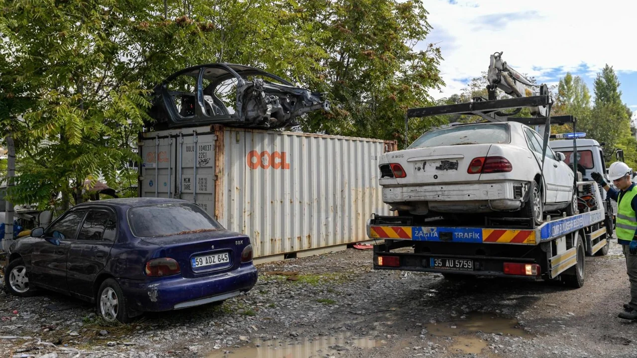 Kamuya açık alanlara terk edilen hurda araçlar, Menemen'in Kazımpaşa Mahallesi'nde toplam 18 dönüm alan üzerine kurulu Hurda Araç Merkezi'ne getiriliyor. Ekipler, İzmir genelinde bulunan 12 oto sanayi sitesinin yanı sıra mahalle ile sokak aralarına terk edilen otomobilleri kaldırıyor. Hurda Araç Merkezi'ne hakkında çalıntı işlemi veya yakalama kararı bulunan araçlar alınmıyor. 6 ay içerisinde merkezden alınmayan araçlar, ilgili kamu kurumları tarafından ekonomiye kazandırılıyor.