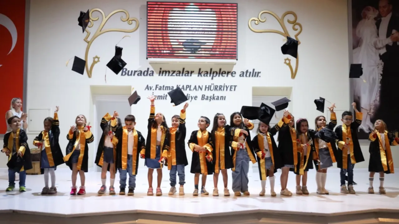 Kocaeli'de İzmit Belediyesi'nin Çınar Çocuk Evlerinde eğitim gören minik öğrenciler mezuniyet coşkusu yaşadıKOCAELİ (İGFA) - İzmit Belediyesi’nin, gelişen dünyaya uyum sağlayan, geleceğe güvenle bakan, yenilikçi ve toplumsal sorunlara çözüm üretebilen çocuklar yetiştirme vizyonu doğrultusunda hizmete sunduğu Yeşilova, Tüysüzler, Şirintepe, Erenler Çınar Çocuk Evlerinde eğitim gören çocuklar için mezuniyet töreni düzenlendi.