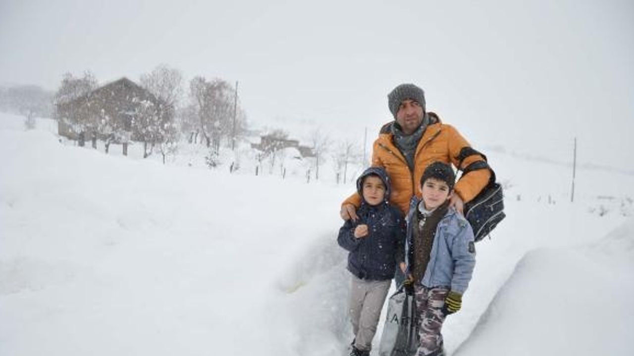 Eser AYDIN/MUŞ, () - MUŞ'un merkez Güdümlü Köyü Kurtuluş Mezrası'ndaki ilkokulda ücretli sınıf öğretmeni olarak görev yapan Cengiz Sur, kar kalınlığının 1.5 metreye çıkması üzerine küçük öğrencilerini çoğu zaman evlerine kucağında götürüyor.