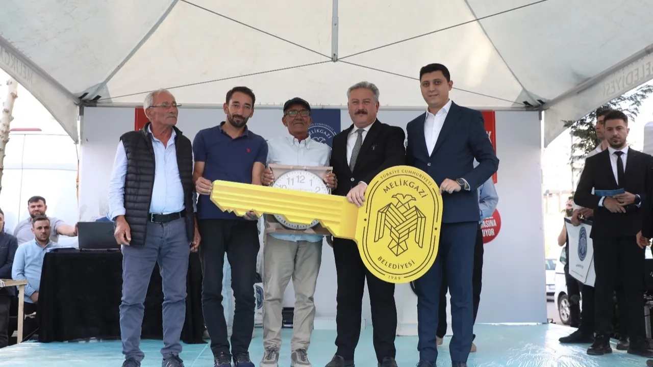 KAYSERİ (İGFA) - 147 ailenin ev hayallerinin gerçekleştiği törende konuşma yapan Kayseri Melikgazi Belediye Başkanı Doç. Dr. Mustafa Palancıoğlu, "Burada tam 23 blok, yaklaşık 1000 daire ve dükkanlardan oluşan bir kentsel dönüşümden bahsediyoruz. Yani bugünkü değeri 3 milyar TL’nin üzerinde. Dolayısıyla böyle büyük bir proje Cumhurbaşkanımızın imzasıyla başladı, 7 blok 147 dairenin hissedarlarına kura çekimini yaparak 300 daireyi teslim etmiş oluyoruz. Kayseri kentsel dönüşümde Türkiye'de 1. sırada geliyor. 600 bin nüfuslu bir belediyeden bahsediyoruz; Türkiye’de bu ölçekte ikinci bir kentsel dönüşüm yapan belediye yok" dedi.