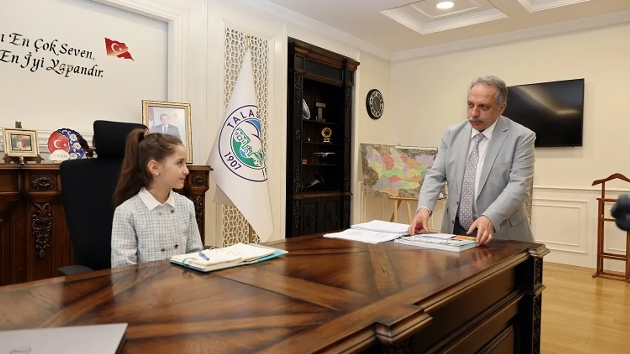 Kayseri Talas Belediye Başkanı Mustafa Yalçın, 23 Nisan Ulusal Egemenlik ve Çocuk Bayramı dolayısıyla başkanlık koltuğunu minik misafirlere emanet etti. TOKİ Levent Çetinkaya İlkokulu öğrencilerini makamında ağırlayan Başkan Yalçın, geleceğin teminatı olan çocuklarla keyifli bir gün geçirdi.