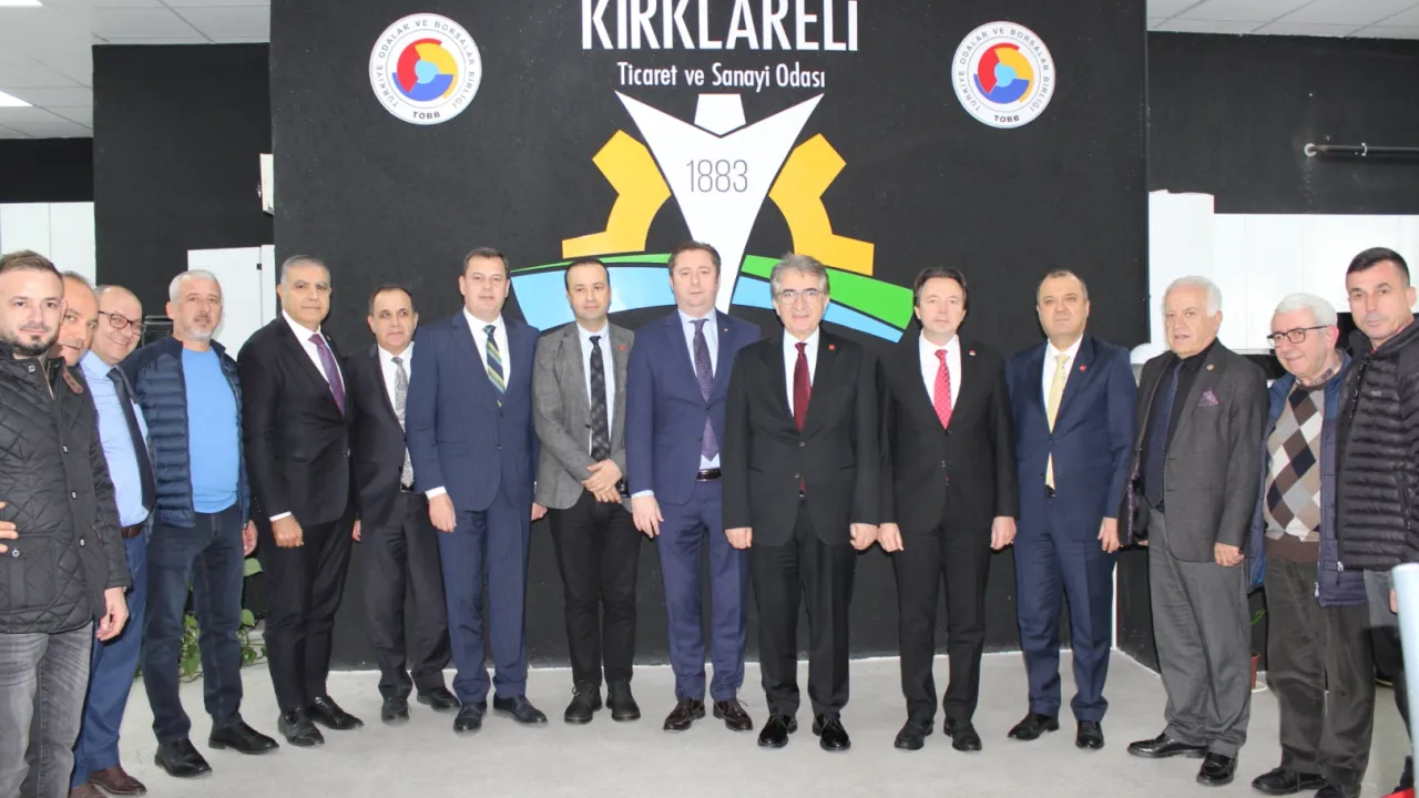 Kırklareli Ticaret ve Sanayi Odası, CHP Genel Başkan Yardımcıları ile milletvekillerini ağırladı.Erdoğan DEMİR / EDİRNE (İGFA) - Kırklareli Ticaret ve Sanayi Odası (Kırklareli TSO)Meclis Başkanı İsmail Hakkı Özsan; CHP Hazine ve Maliye Bakanlığı’ndan Sorumlu Genel Başkan Yardımcısı Prof. Dr. Yalçın Karatepe, Ticaret Bakanlığı’ndan Sorumlu Genel Başkan Yardımcısı Prof. Dr. Volkan Demir, Hatay Milletvekili Mehmet Güzelmansur, Bolu Milletvekili Türker Ateş, Yalova Milletvekili Tahsin Becan, Kırklareli Milletvekili Vecdi Gündoğdu, Kırklareli İl Başkanı Bora Terzi ile beraberindekileri ağırladı.
