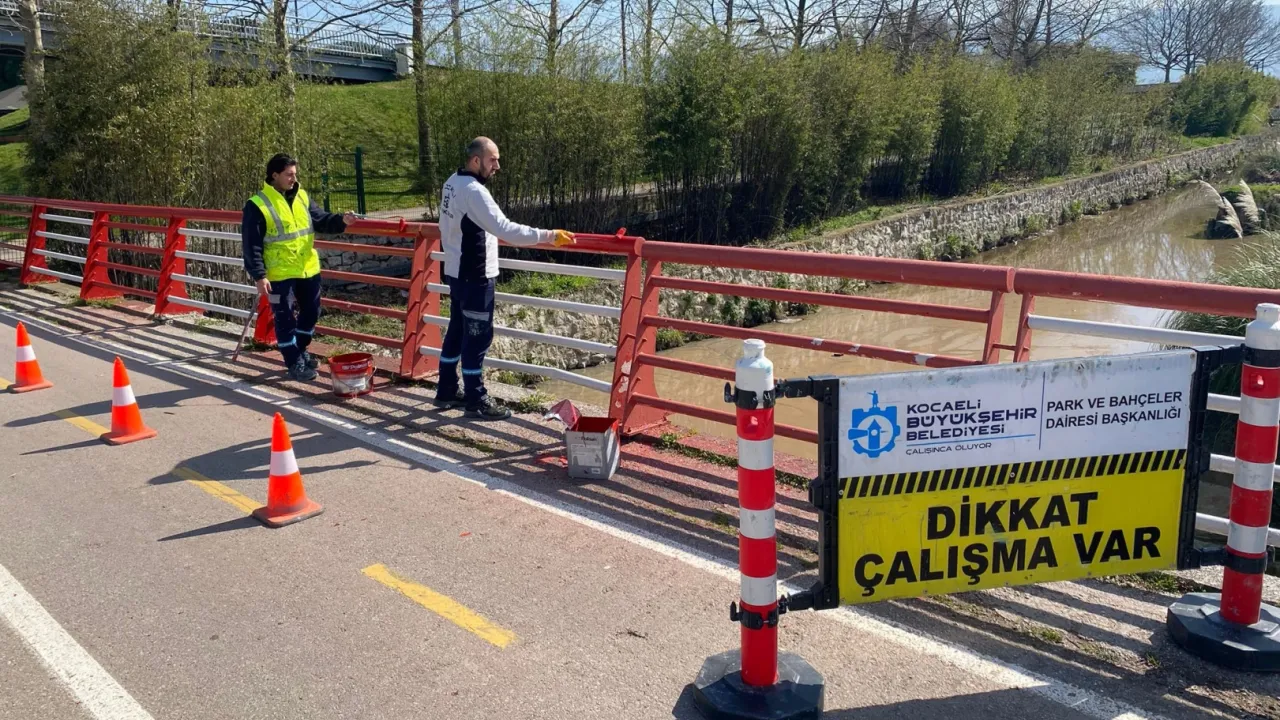 Kocaeli Büyükşehir Belediyesi, Seka Park genelinde korkuluklardan oturma gruplarına kadar tüm donatıları boya ve vernik çalışmalarıyla yenileyerek parkın güvenliğini ve estetik görünümünü güçlendiriyor.