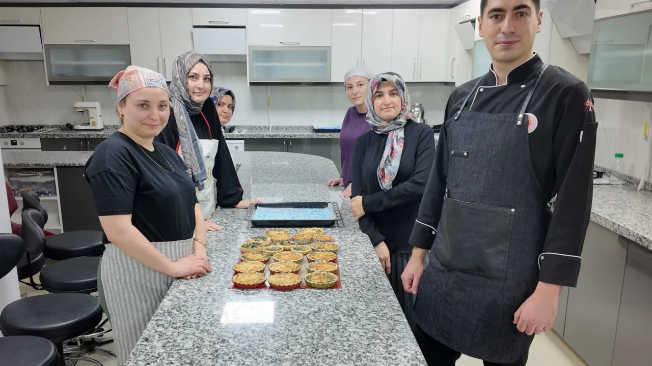 Burada dört ayrı grupta eğitimler vermekteyiz. Haftanın 5 günü boyunca yaklaşık 50 civarı kursiyerimiz mevcut. Kursiyerlerimize pastacılık alanında hem sektörde çalışabilme imkanı, hem de evlerinde yaptıkları ürünlerin sunumlarının geliştirilmesini sağlamayı amaçlıyoruz. Sektörde görülen çalışma sistemiyle burada da o şekilde çalışıyoruz. Kurs sonucunda da belge almaktalar ve bu belgelerin de mesleki geçerliliği mevcut. Bu sayede mutfak ve pastacılık alanında CV'lerine ekleyebilecekleri bir sertifika sahibi olabilirler.'