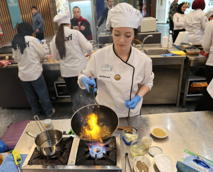 Gastronomi alanına ilgi duyan öğrencilerin yeteneklerini sergileme fırsatı bulduğu organizasyon, hem rekabet hem de öğrenme açısından zengin bir deneyim sundu. Kocaeli Üniversitesi ve Kocaeli İl Milli Eğitim Müdürlüğü iş birliğiyle 'Sıfır Atık-Esnaf Lokantası' temasıyla gerçekleştirilen yarışmada gençler, sürdürülebilir mutfak anlayışını yaratıcı tariflerle buluşturdu. Katılımcılar, belirlenen süre içinde hem lezzet hem sunum hem de israfı önleme kriterlerine uygun tabaklar hazırlamak için kıyasıya mücadele etti.