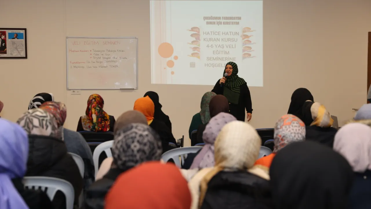 Konya Selçuklu Belediyesi Hatice Hatun Çocuk Mektebi’nde ailelere yönelik olarak “Çocuğumun farkındayım bunun için kurstayım” projesi kapsamında eğitim semineri düzenlendi.KONYA (İGFA) - Konya Selçuklu Belediyesi, Hatice Hatun Çocuk Mektebi, 4/6 yaş aralığında çocukların milli ve manevi değerler çerçevesinde geleceğe emin adımlarla hazırlanması için alanında uzman eğitmenler eşliğinde örnek eğitim faaliyetleri gerçekleştiriyor. Türkiye’ye örnek bu kompleksteokul öncesi çağdaki çocuklar Kur’an-ı Kerim, temel dini bilgiler ve kişisel gelişim sağlayan aktiviteler ile de verimli ve keyifli bir vakit geçirirken aileler için çocuk-aile ilişkilerini güçlendirecek eğitim faaliyetleri gerçekleştiriliyor. Seminerlerde psikolojik danışmanlarve müftülük vaizleri görev alıyor.