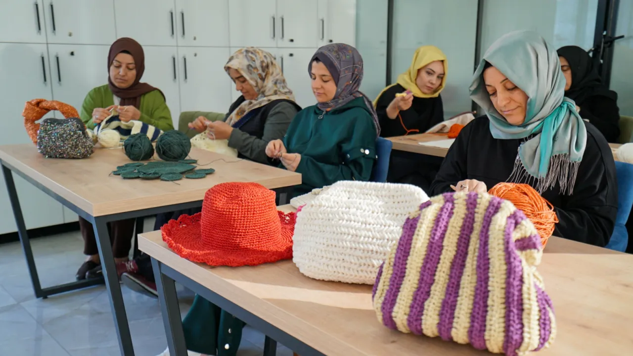 Panç, rölyef, supla ve çanta örümü gibi atölyelerde el becerilerini geliştiren anneler, aynı zamanda sosyalleşiyor, moral buluyor ve psikolojik destek sağlıyor.
