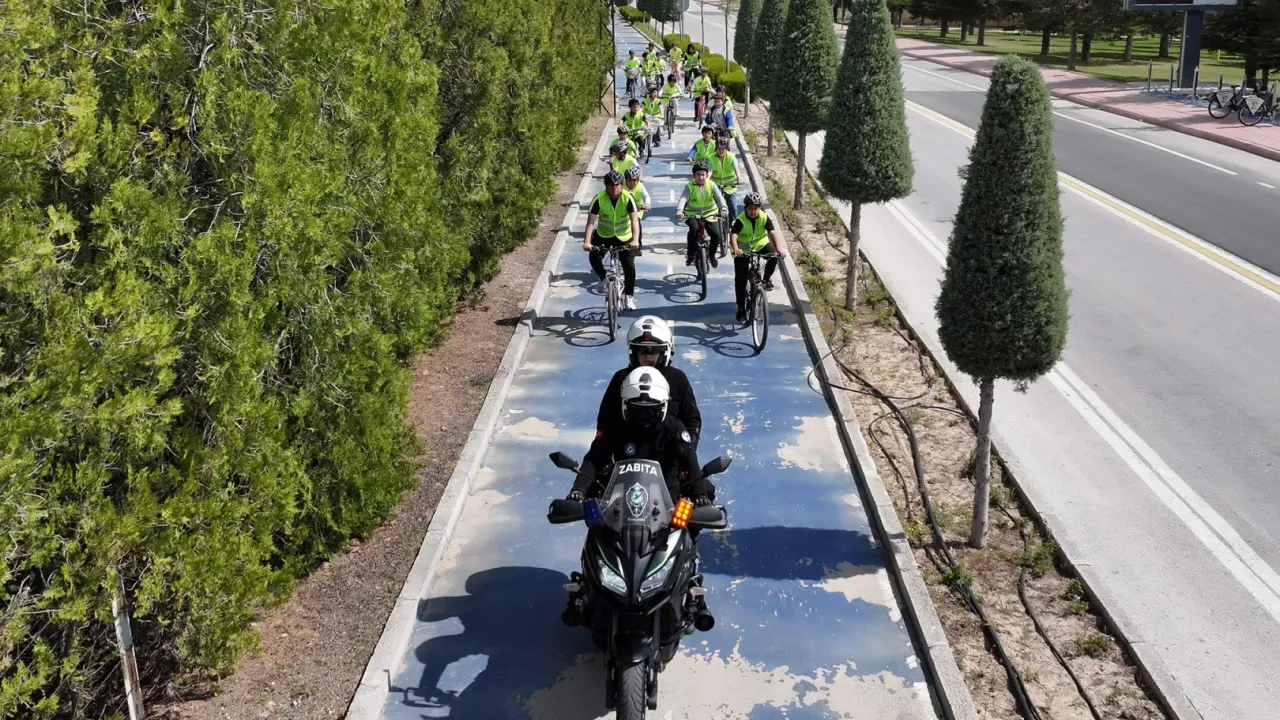 Öğrencilere önce bisiklet kullanmanın yararları, bisiklet sürüş ekipmanları ve güvenli bisiklet kullanımına dair verilen teorik eğitimin ardından motorize zabıta ekipleri eşliğinde uygulamalı güvenli bisiklet sürüşü gerçekleştirildi.