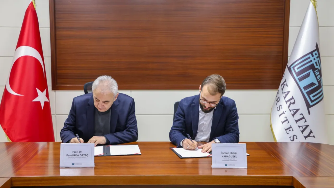 KONYA (İGFA) - KTO Karatay Üniversitesi ile TÜGVA arasında İhtisas Akademisi İş Birliği Protokolü imzalandı. Öğrencilere akademik eğitimler sunulması, sosyal bilinçlerinin geliştirilmesi, disiplinler arası etkileşimin artırılması ve nitelikli akademik çalışmalarla literatüre katkı sağlanması hedefiyle imzalanan protokol törenine, KTO Karatay Üniversitesi Rektörü Prof. Dr. Fevzi Rifat Ortaç ve TÜGVA Üniversiteler Koordinatörü İsmail Hakkı Karagüzel katıldı.