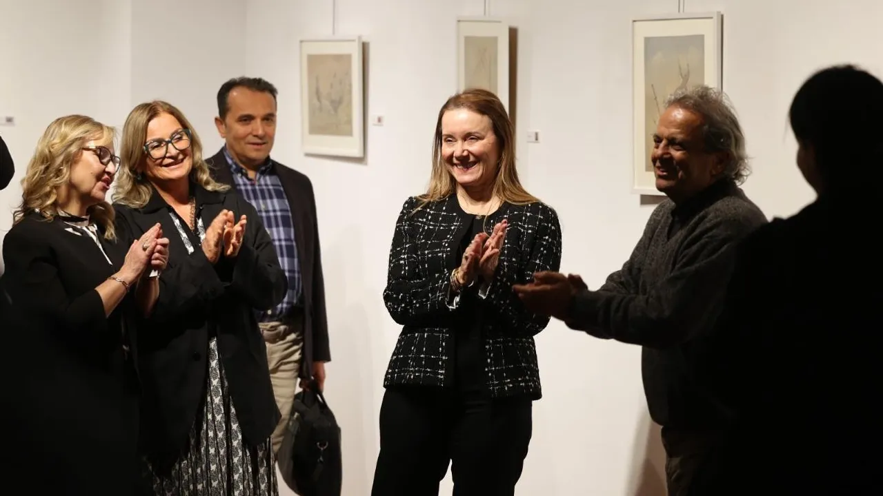 Davetliler, sergiyi gezerek resimlerin yapılış hikâyesini ve eserler hakkındaki bilgiyi sergi sorumlusu İbrahim Karaoğlu'ndan dinledi.