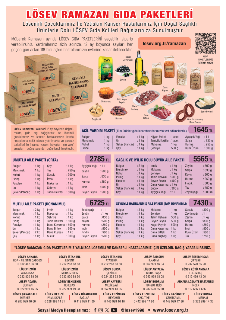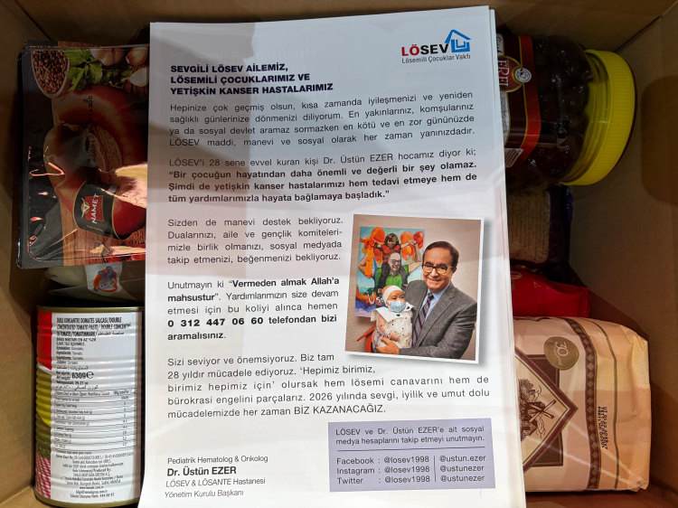 İstanbul'daki Ülker Sports Arena'da gönüllüler ve bağışçılarla hazırlanan koliler, doğal ve sağlıklı ürünlerle donatılırken, Türkiye'nin dört bir yanındaki ailelerin sofralarına Ramazan boyunca bereket katılıyor. LÖSEV, 27 yıldır sürdürdüğü ücretsiz tedavi, eğitim, konaklama, sosyal ve psikolojik destek hizmetleriyle, Vakfa kayıtlı 118 bini aşkın çocuk ve yetişkin hastanın yanında oluyor.