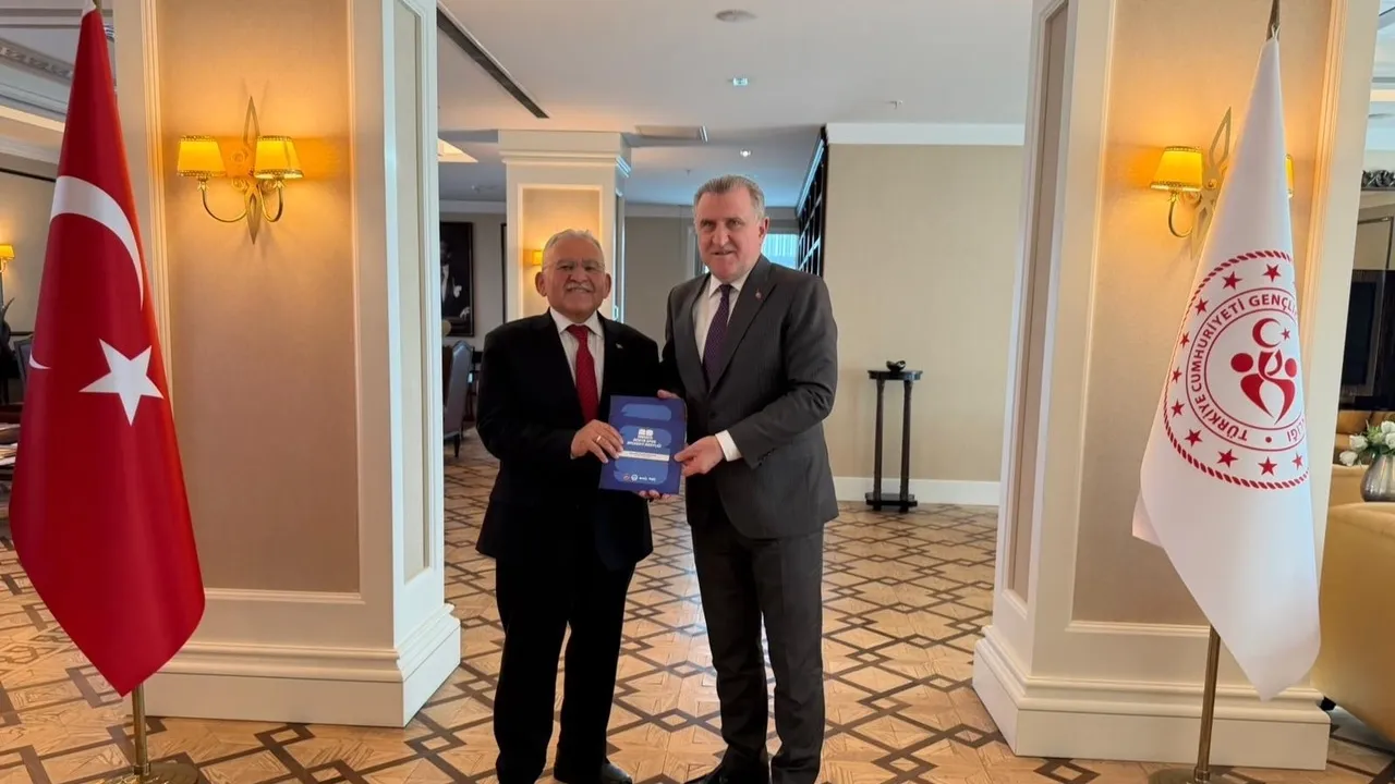 KAYSERİ (İGFA) - Kayseri Büyükşehir Belediye Başkanı Dr. Memduh Büyükkılıç, ilk olarak Gençlik ve Spor Bakanı Osman Aşkın Bak ile bir araya gelerek, Kayseri'nin spor alanındaki mevcut durumu ve gelecek hedeflerini kapsamlı şekilde ele aldı.