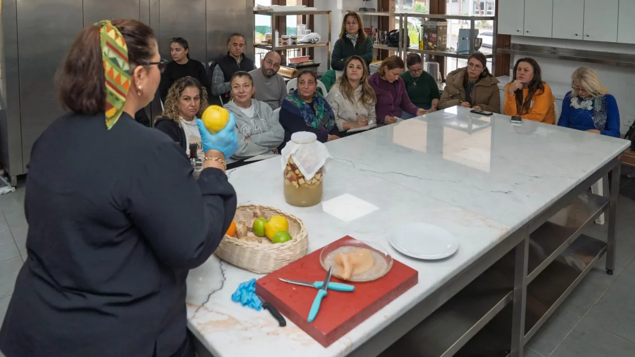 Elma, limon, portakal, zencefil ve ayva ile sirke yapımını öğreten Feyizoğlu, sirkenin faydalarını da aktardı.
