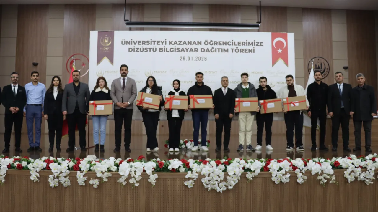 MARDİN (İGFA) - Sosyal belediyecilik anlayışıyla eğitimde fırsat eşitliğini güçlendirmeyi hedefleyen Midyat Belediyesi, 'Üniversitelilere Bilgisayar Desteği' projesi kapsamında hak sahibi öğrencileri yalnız bırakmadı. Proje çerçevesinde temin edilen 252 dizüstü bilgisayar, düzenlenen törenle öğrencilere teslim edildi.
