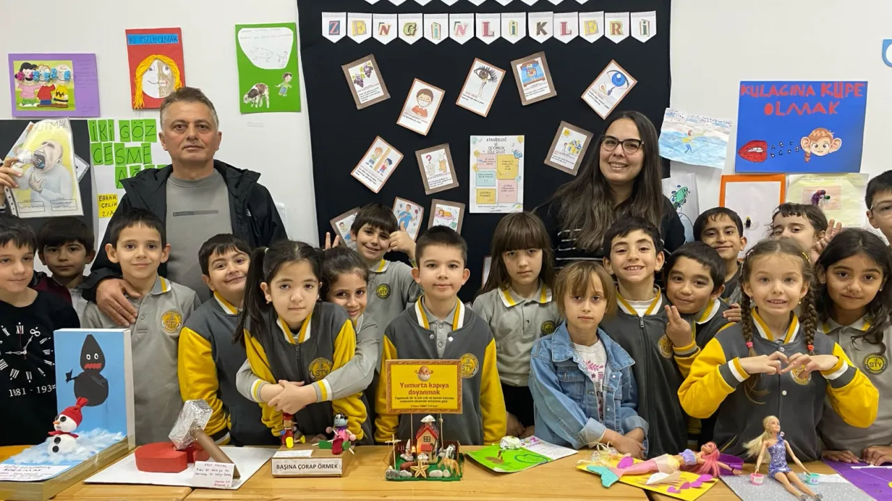 Bursa'nın Mudanya ilçesinde Şehit Tunahan Yavuz İlkokulu'nda "Dilimizin Zenginlikleri Projesi" kapsamında öğrencilerin çeşitli objeler kullanarak hazırladığı serginin açılışı gerçekleştirildi.BURSA (İGFA) - Mudanya Şehit Tunahan Yavuz İlkokulu'nda ‘Dilimizin Zenginlikleri’ kapsamında Cengiz Ekiz ve Ebru Akagündüz'ün sınıf öğretmenliğindeki ikinci sınıf öğrencilerinin atasözleri ve deyimleri tasvir ettiği, geri dönüşüm malzemelerinin de kullanıldığı çalışmalardan oluşan sergi büyük ilgi gördü.