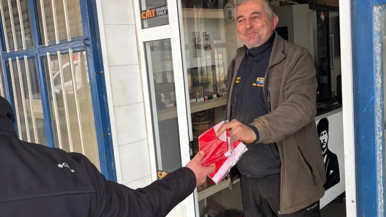 MUĞLA (İGFA) - Muğla Büyükşehir Belediyesi, Türk bayrağına yönelik gerçekleştirilen saldırının ardından anlamlı bir dayanışma örneği sergiledi. Büyükşehir Belediyesi ekipleri, esnaf ve vatandaşlara Türk bayrağı dağıtarak milli değerlere sahip çıkma mesajı verdi.
