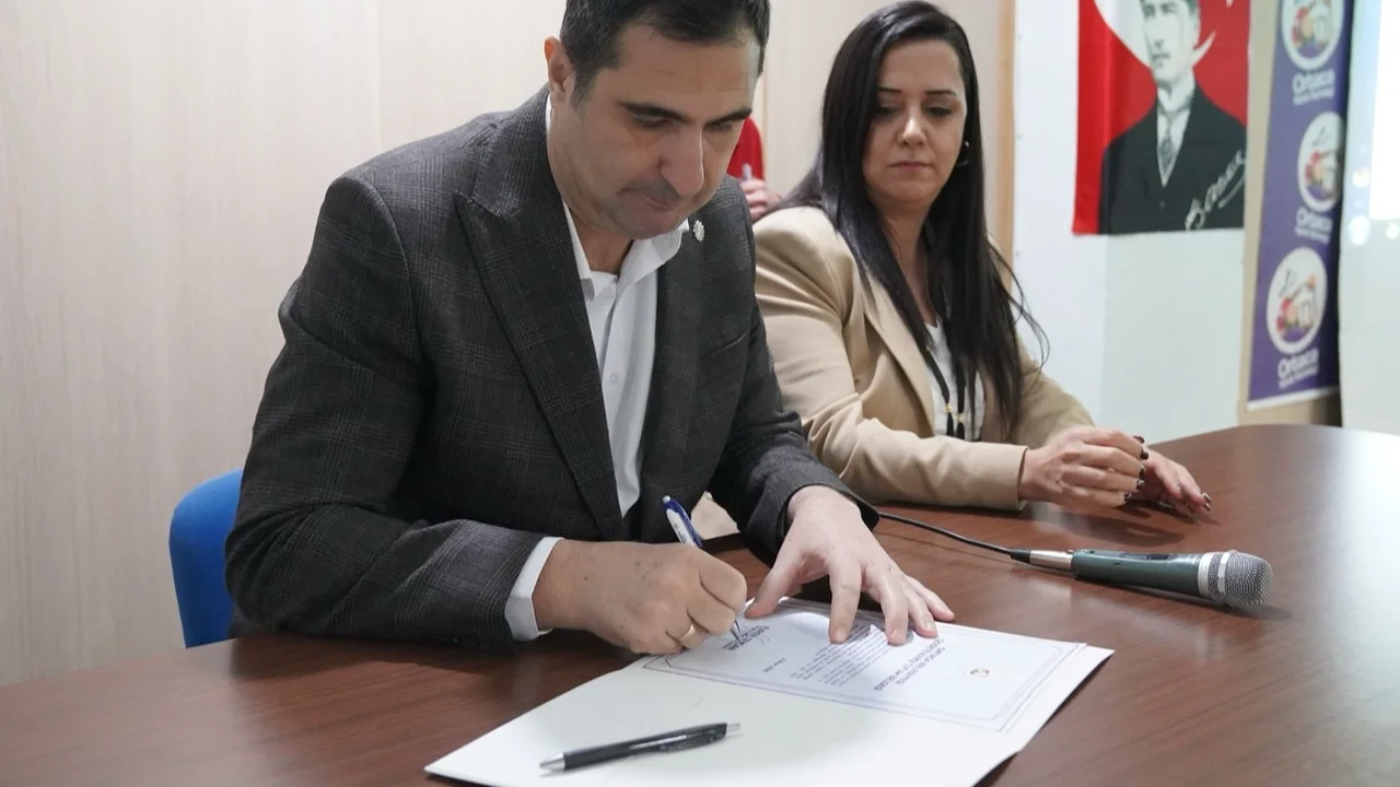 Muğla'da Ortaca Belediye Başkanımız Evren Tezcan, Muğla Büyükşehir Belediyesi Kadın ve Aile Hizmetleri Dairesi Başkan Vekili Dr. Özge Demirel ile “Şiddete Karşı Tutum” belgesini imzaladı.BURSA (İGFA) - Kadına yönelik şiddet, sadece bir toplumsal sorun değil, aynı zamanda insanlık suçu olduğunu söyleyen Başkan Tezcan, “Her bireyin, cinsiyeti ne olursa olsun özgürce yaşama hakkı vardır ve bu hak asla ihlal edilmemelidir. Kadınlarımızın haklarını koruyarak, eşit bir toplum için birlikte çalışmaya devam edeceğiz.” şeklinde konuştu.