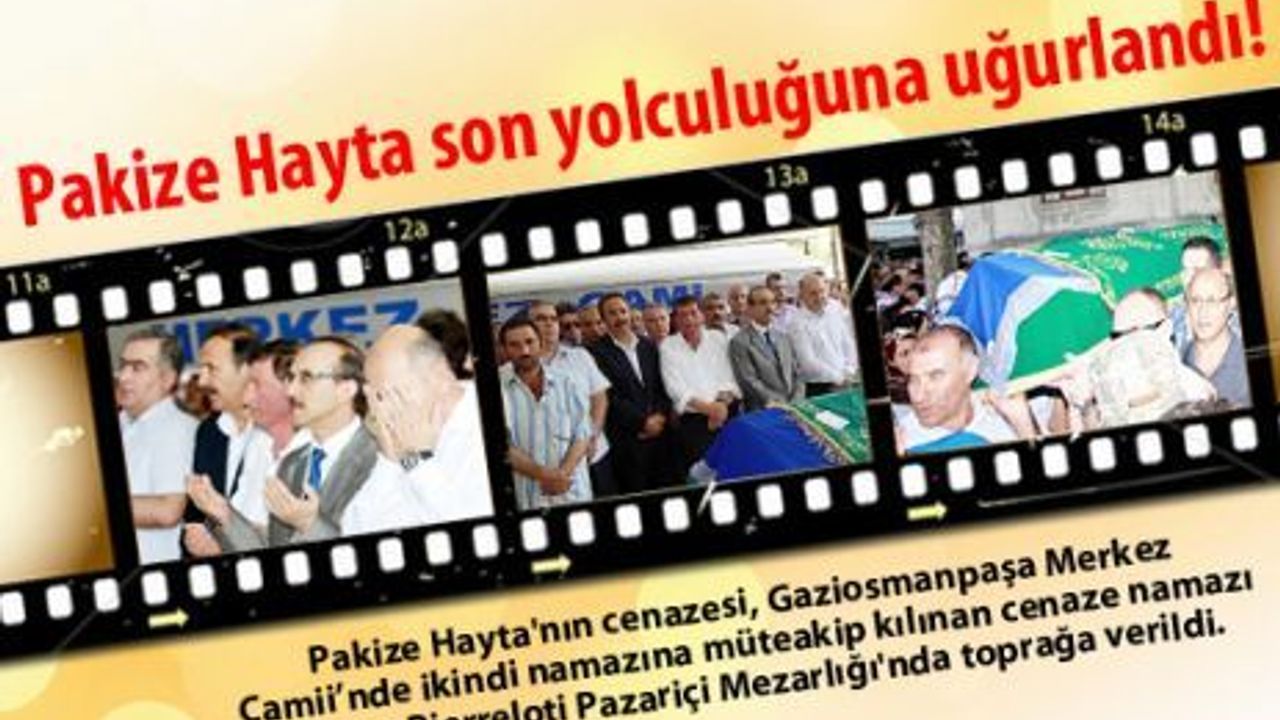 Mustafa Hayta'nın annesi Pakize Hayta'nın cenazesi bugün Gaziosmanpaşa Merkez Camii’nde ikindi namazına müteakip kılınan cenaze namazı sonrası Pierreloti Pazariçi Mezarlığı'nda toprağa verildi.