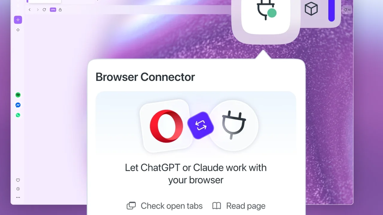 Opera, Tarayıcı Bağlayıcısı özelliğiyle yapay zekâ araçlarını doğrudan tarayıcı oturumlarına entegre etti.