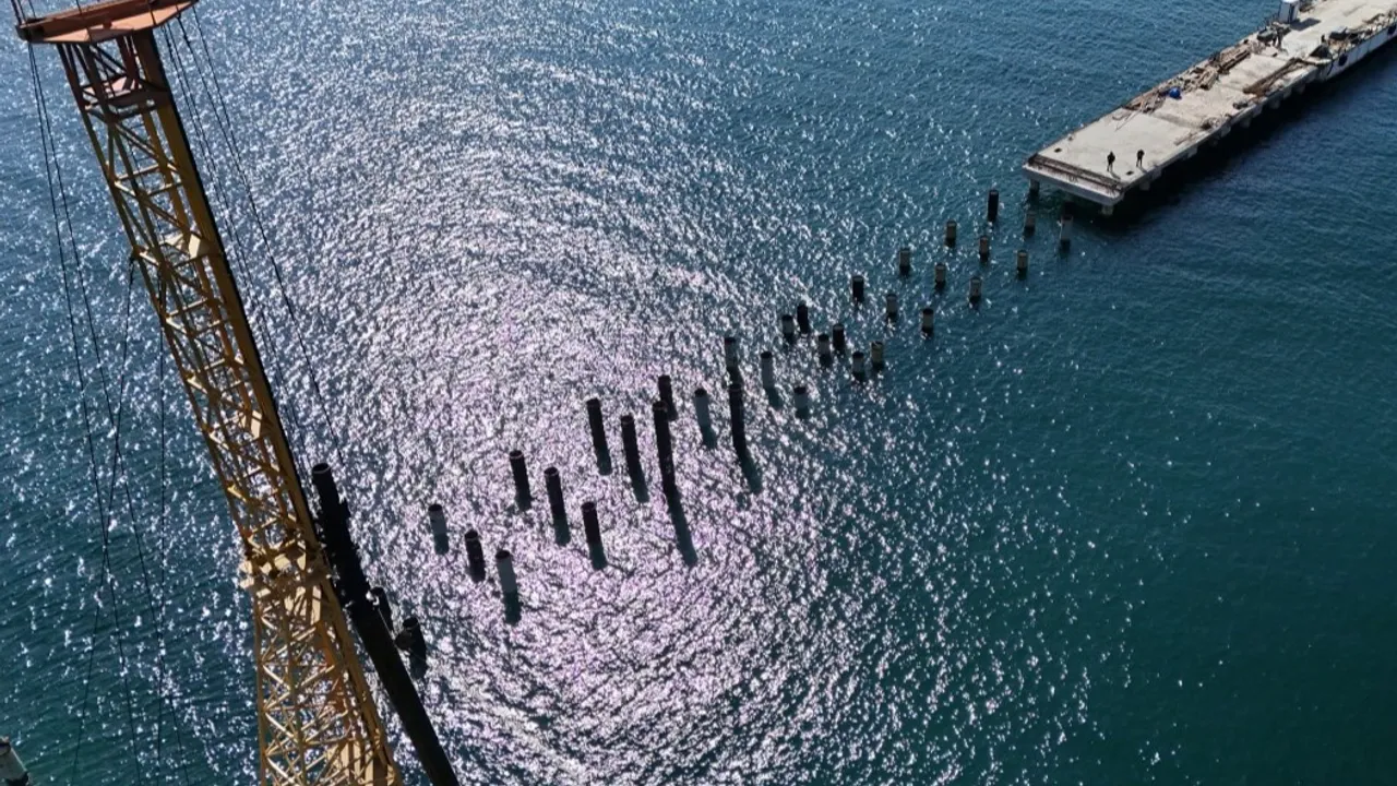 24 tane başlık kirişinin 7 tanesi tamamlanırken iskelenin 30 metrelik kısmında beton dökümü yapıldı.