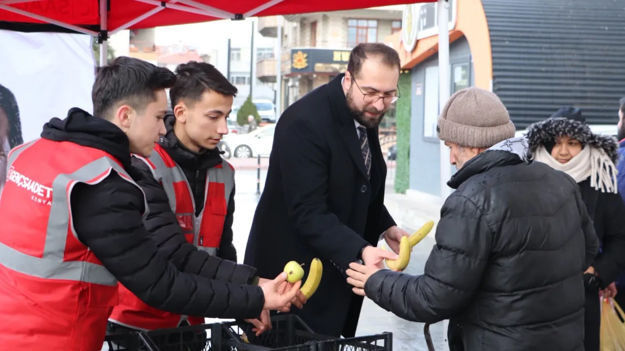 KONYA (İGFA) - Gençlik kolları üyeleri tarafından kurulan manav standında mevsimlik meyveler vatandaşlara ikram edildi. Etkinliğin, hem sosyal yardımlaşmayı güçlendirmek hem de 'göz hakkı' geleneğine dikkat çekmek amacıyla düzenlendiği belirtildi.