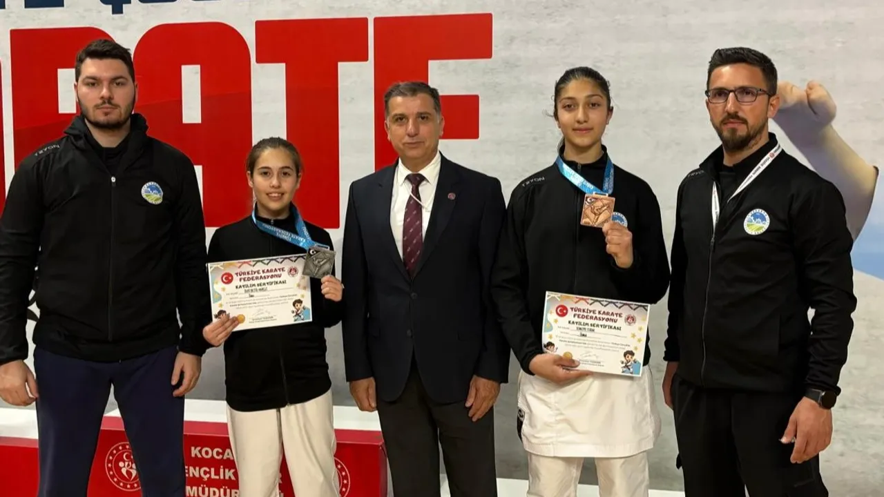 Sakarya Büyükşehir Belediyesi karate sporcuları Ülkü Betül Harçlı ve Sümeyye Turak, Kocaeli’nde düzenlenenTürkiye Çocuklar Karate Şampiyonası’ndafırtına gibi eserek kazandıkları derecelerle şehri gururlandırdı.SAKARYA (İGFA) - Sakarya Büyükşehir Belediyesi karate sporcuları Ülkü Betül Harçlı ve Sümeyye Turak,10 ve 13 Nisan tarihleri arasında Kocaeli’nde düzenlenen ve 3 bin 450 sporcunun kıyasıya mücadele ettiği Türkiye Çocuklar Karate Şampiyonası’nda mindere çıktı.