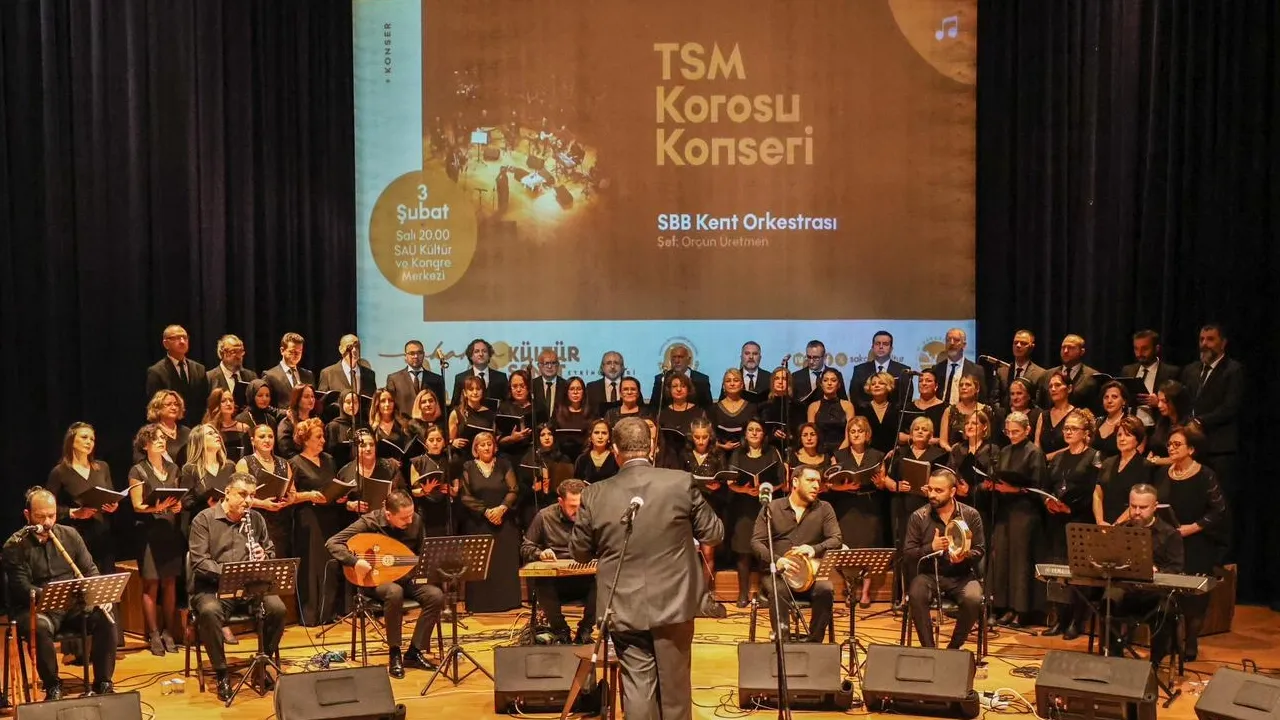 Şef Orçun Üretmen yönetiminde Hüzzam makamında icra edilen seçkin eserler, salonda Türk Sanat Müziği dolu bir atmosfer oluşturdu. Duygu yüklü performanslarıyla dikkat çeken koro, konser sonunda izleyiciler tarafından uzun süre alkışlanarak alkış tufanına tutuldu. Kültür ve Sosyal İşler Dairesi Başkanı Alpay Şirin'de konseri yakından takip edenler arasındaydı.