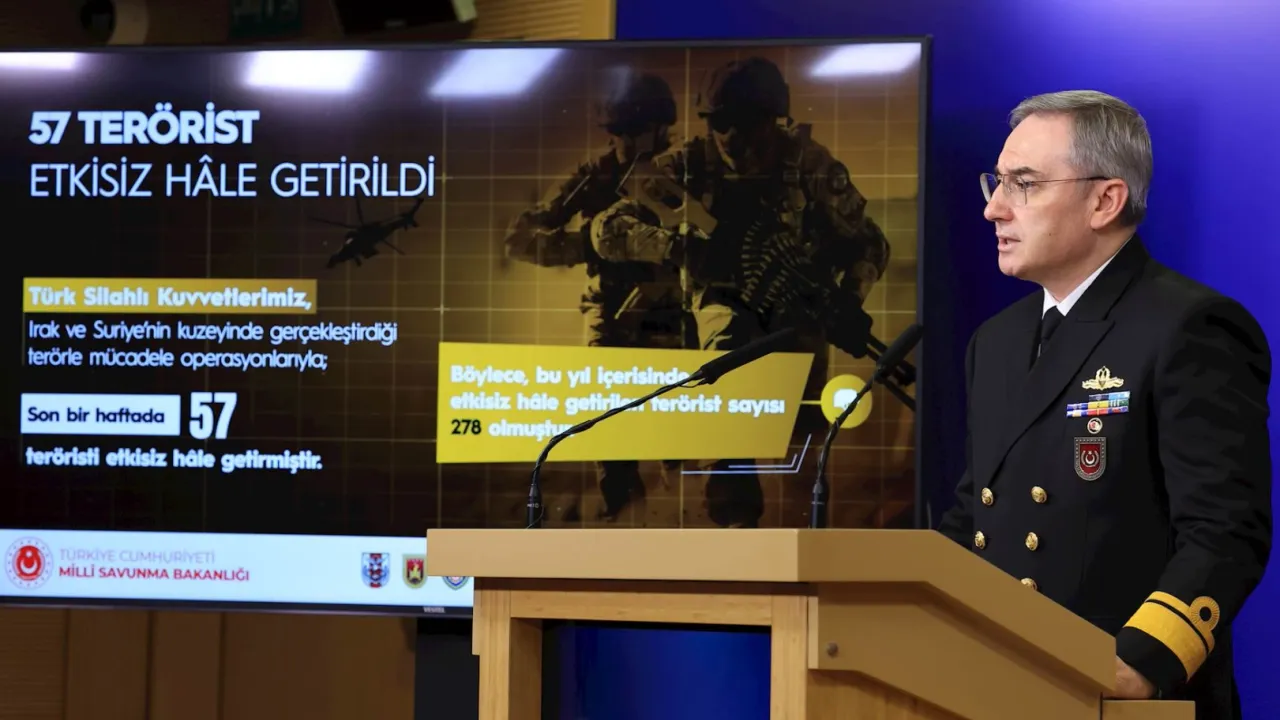 Irak ve Suriye’nin kuzeyinde son bir haftada 57 terörist etkisiz hale getirildi. Böylece, bu yıl içerisinde etkisiz hale getirilen terörist sayısı 278 oldu.ANKARA (İGFA) - Millî Savunma Bakanlığının faaliyetleri başta olmak üzere gündemdeki konulara ilişkin olarak Haftalık Basın Bilgilendirme Toplantısı gerçekleştirildi.