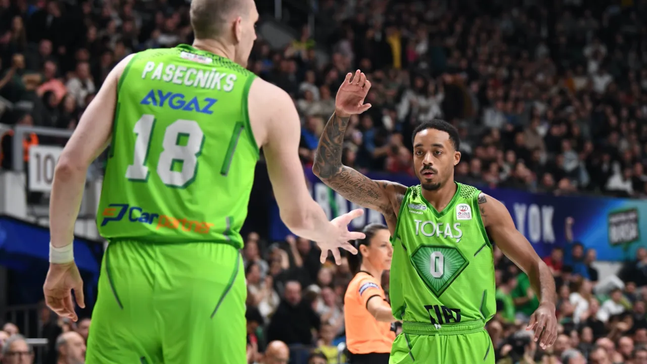 BURSA (İGFA) - Türkiye Sigorta Basketbol Süper Ligi Asım Pars Sezonu 26. hafta karşılaşmasındaTOFAŞ, deplasmanda Türk Telekom’a konuk oluyor. Ligde 16 galibiyet-9 mağlubiyeti bulunan ve normal sezonu ilk 4 içerisinde tamamlamayıhedefleyen Mavi Yeşilliler, oynadığı son 3 maçtan mağlubiyetle ayrılmıştı. Ankara deplasmanından galibiyetle dönmek isteyen Bursa ekibinde sakatlığı bulunan Tolga Geçim karşılaşmada forma giyemeyecek. Ligde 11 galibiyet-14 mağlubiyeti bulunan Türk Telekom ise geçen hafta sahasında Mersin Spor’u 94-80 yenmeyi başarmıştı.