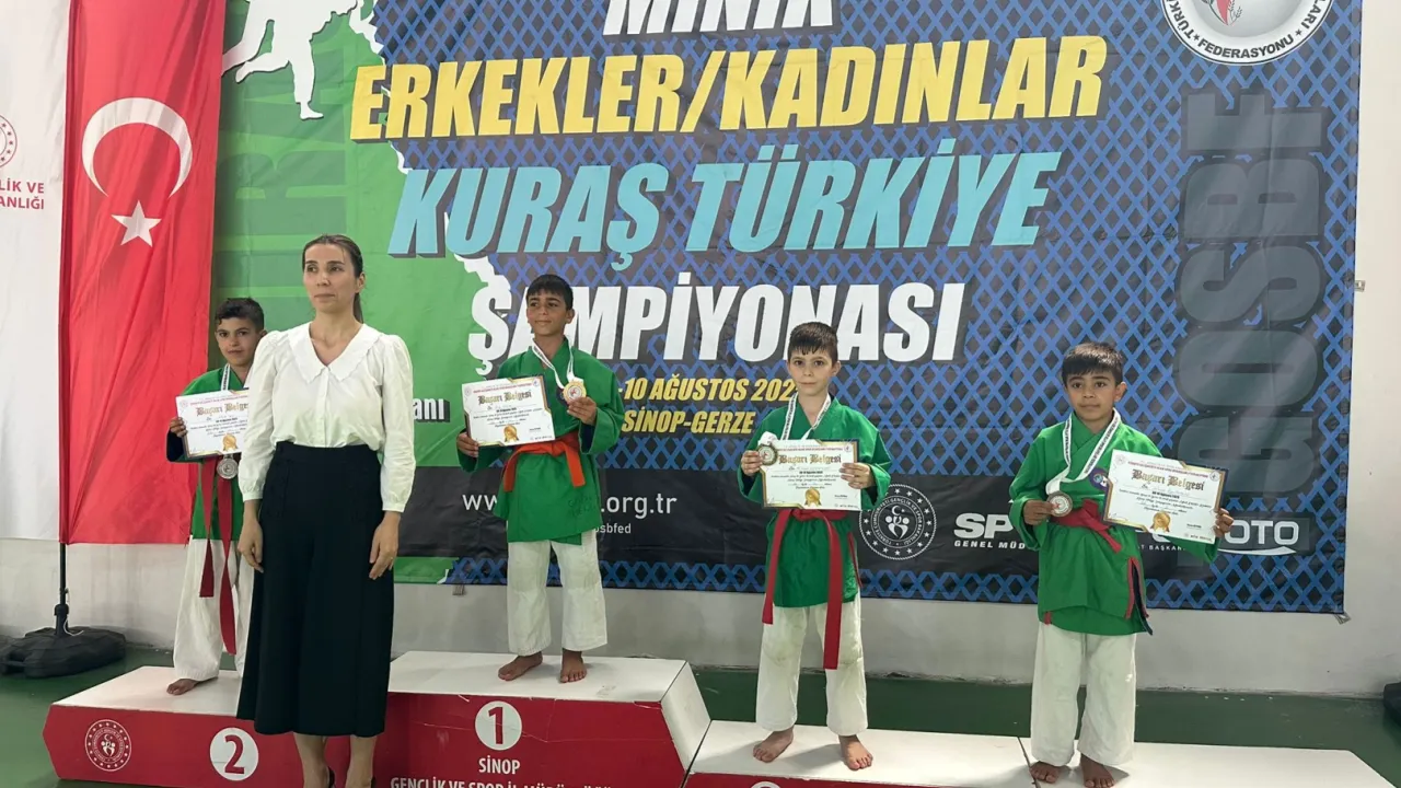 Trabzon Büyükşehir Belediyespor Kulübü sporcuları, Minikler Türkiye Kuraş Şampiyonası’nda gururlandıran dereceler elde ederek madalyalarla döndüler.TRABZON (İGFA) - Trabzon Büyükşehir Belediyespor Kulübü sporcuları, başarıları ile gururlandırmaya devam ediyor. 8-10 Ağustos 2025 tarihleri arasında Sinop’ta düzenlenen Minikler Türkiye Kuraş Şampiyonası’na bireysel olarak katılan sporculardan 40 kiloda Yüsra İnan ve 52 kiloda Aylin Şimşek şampiyon oldu. 24 kiloda Hafsa Pehlivan ve 48 kiloda Damla Hamzaoğlu ikinci olurken Kürşad Değermenci 26 kiloda üçüncü oldu.
