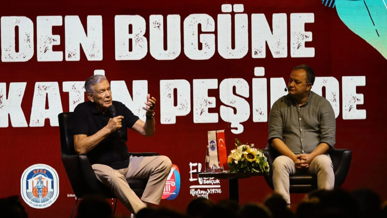EFEST’in ilk gününde usta gazeteciler Uğur Dündar ve Gökmen Ulu, “Dünden Bugüne Hakikatin Peşinde” söyleşisinde Efes Selçuklular ile buluştu.İZMİR (İGFA) - Söyleşiye, Türkiye’nin geleceği üzerine değerlendirmeleriyle başlayan usta Gazeteci Gökmen Ulu, birçok yurttaşın endişelerini paylaştığını belirterek; efeler diyarında sadece zeybek oynarken diz çöken, dik duruşlu, başarılı bir başkan gördükleri için geldiklerini söyledi.